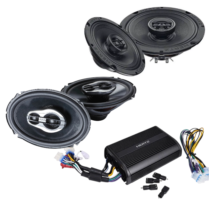 • Hertz SP 4.500 (Güç Merkezi): 4 kanallı yapısıyla hem ön hem arka takımı besleyen, suya dayanıklı (IP55) dijital amfi. Motosikletin elektrik sistemini zorlamadan 600W RMS güç üretir.