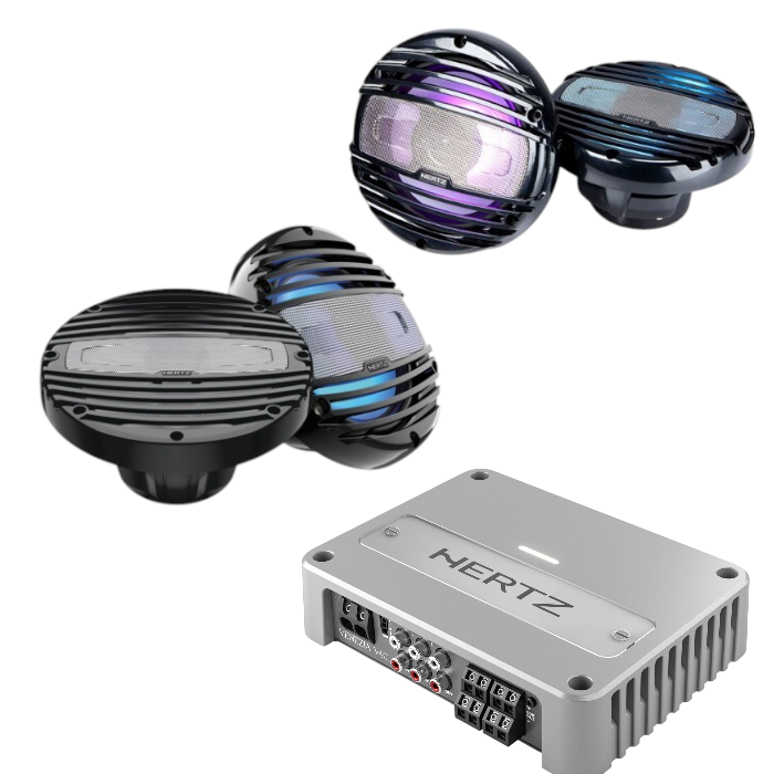 • Hertz Venezia V4-C (Amfi): Venezia serisinin kompakt ama ödün vermeyen güç kapasitesine sahip 4 kanal marin amfisi. Tüm hoparlörleri en yüksek ses seviyelerinde dahi kristal netliğinde besler ve korozyona karşı özel kaplamalıdır.