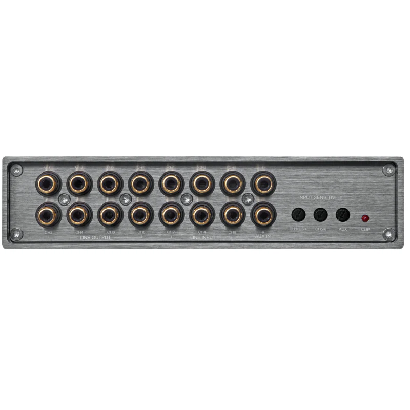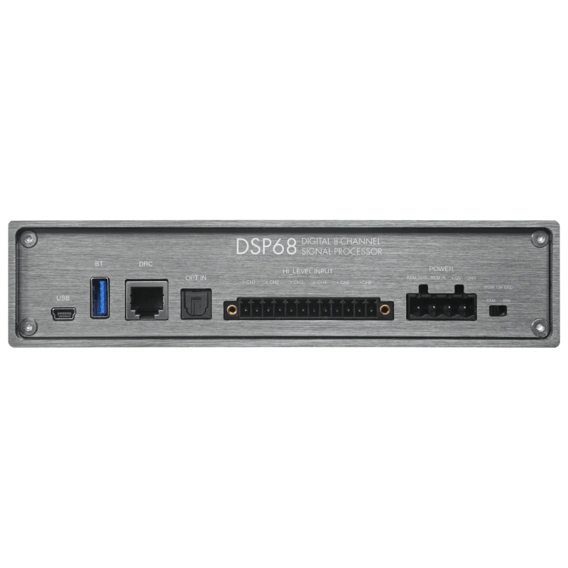DSP68, orijinal teybi koruyarak sisteminizi hi-fi seviyesine taşımanız için tasarlanmış kompakt bir 8 kanallı işlemcidir. High/Low seviye girişler (EPS®), AUX ve optik PCM giriş sayesinde çoklu kaynakları yönetir; 8 RCA 6.5 Vrms çıkışla amplifikatörlere temiz, güçlü sinyal gönderir.