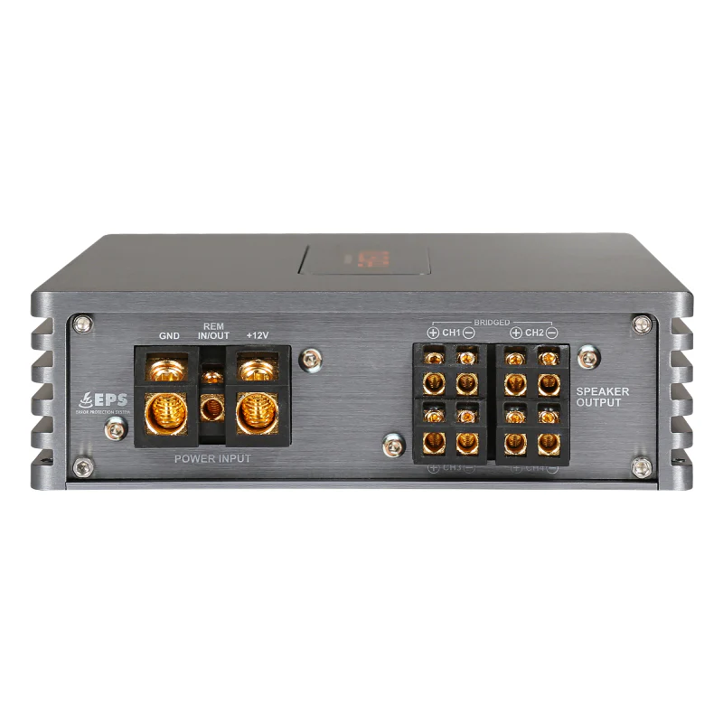 FOUR 100, kapı/arka hoparlörleri net ve kontrollü biçimde sürmek için tasarlanmış 4 kanal Sınıf D amplifikatördür. High-Level (OEM hoparlör seviyesi) ve RCA Low-Level girişleri ile orijinal teyp veya aftermarket ünitelere kolay entegrasyon sunar.