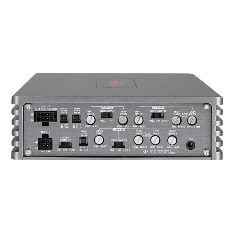 Musway SIX 100, ön/arka/center ya da 3-yollu aktif projelerde temiz ve kontrollü güç için tasarlanmış 6 kanallı Sınıf D amplifikatördür. High-Level (OEM hoparlör seviyesi) ve RCA Low-Level girişleri sayesinde orijinal teyp veya aftermarket ünitelerle hızlı entegrasyon sağlar.