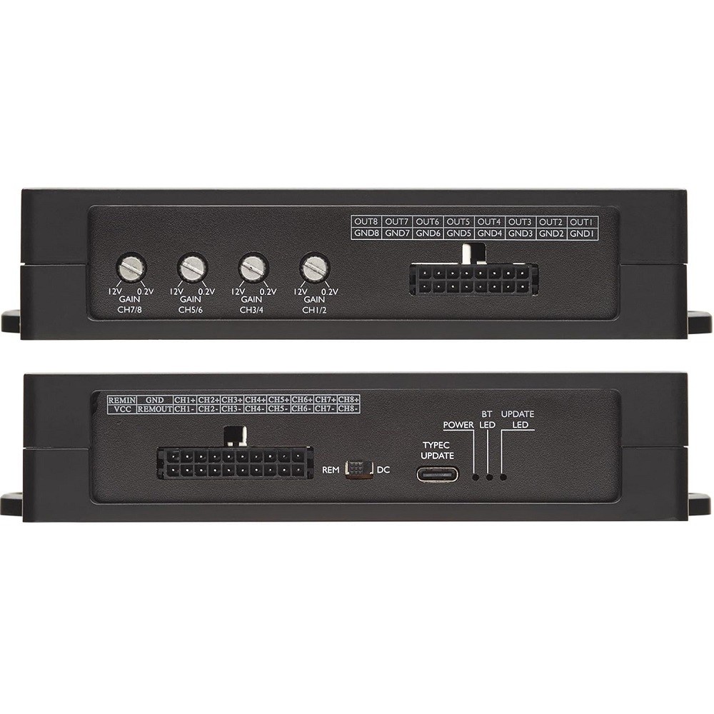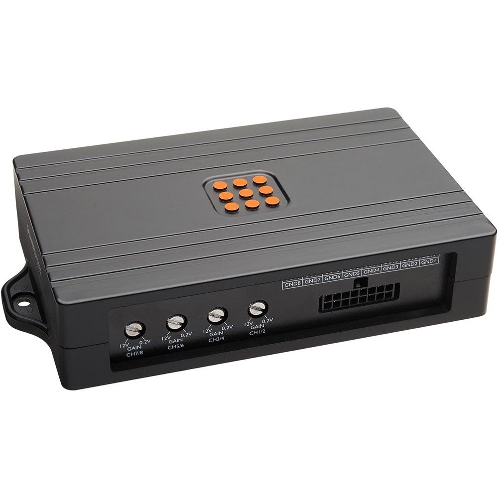 Sub/under-seat yönlendirme? 8 çıkıştan serbest atama ile mono amfiye veya ilgili kanala yönlendirilir.