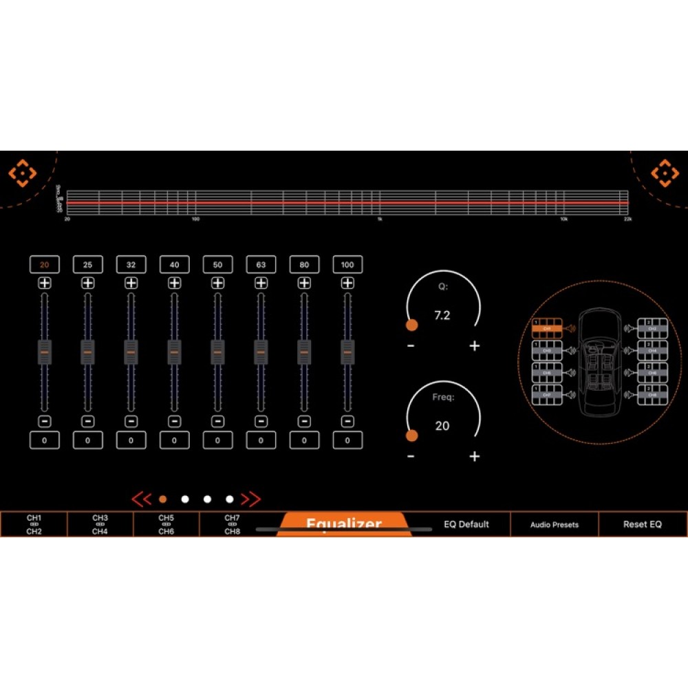 8 kanal esneklik: front/rear/sub/under-seat kombinasyonlarına uygun