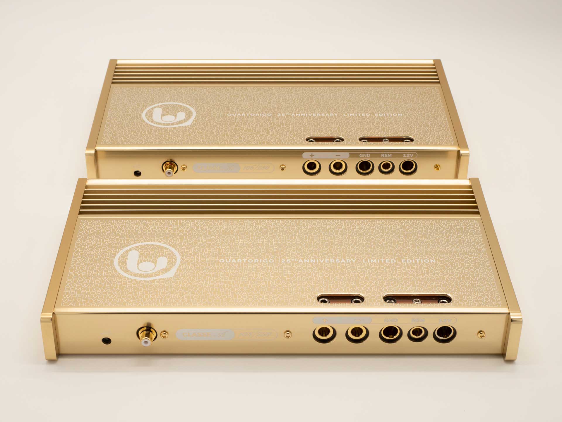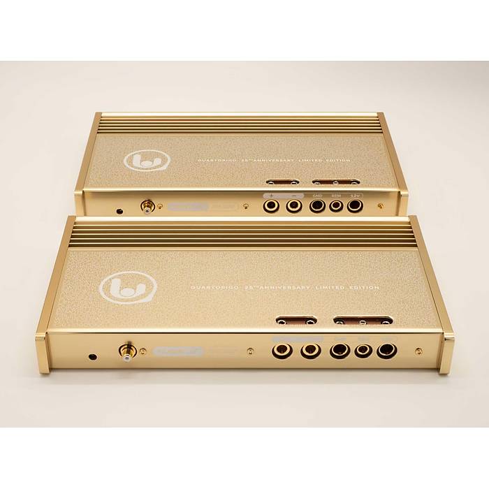 Beş yıl önceki Ingot 1 ve Ingot 2’nin başarısını taçlandıran bu 25. Yıl Dönümü Sınırlı Üretim, Quartorigo’nun en iyi teknolojilerini bir araya getiren benzersiz bir A Sınıfı mono amplifikatör çiftidir. Tamamen İtalya'da tasarlanıp üretilen bu set, altın kaplama pirinç blok konektörleri ve lazerle işlenmiş altın anotlanmış şasisiyle koleksiyonerler için üretilmiştir. Öne Çıkan Özellikler: